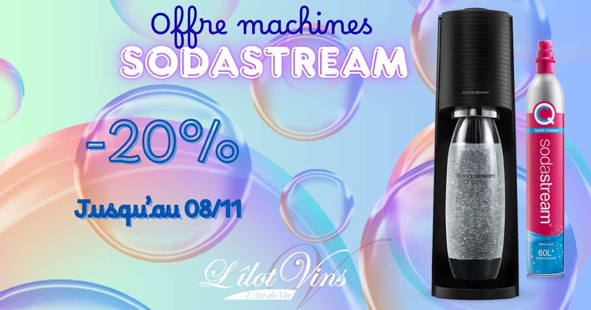 Rendez-vous dans vos caves L’Îlot Vins pour profiter de –20% sur les machines SodaStream TERRA jusqu’au 8 novembre.